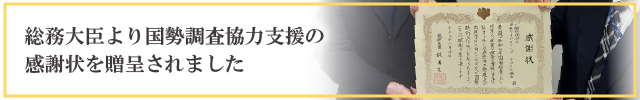 こうした取り組みが評価され、このたび総務大臣より国勢調査協力支援に対する感謝状を贈呈されました。