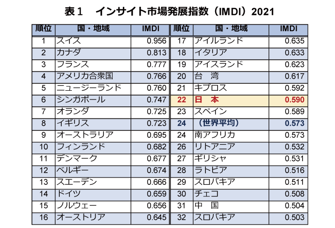 国際的なインサイト産業団体であるESOMARでは、昨年末に『インサイト市場発展指数(IMDI)2021』を発表しました。これは世界各国のインサイト産業の発展度合いを評価する「初の」試みで、国連の「人間開発指数:HDI」に準じた手法を採用しています。